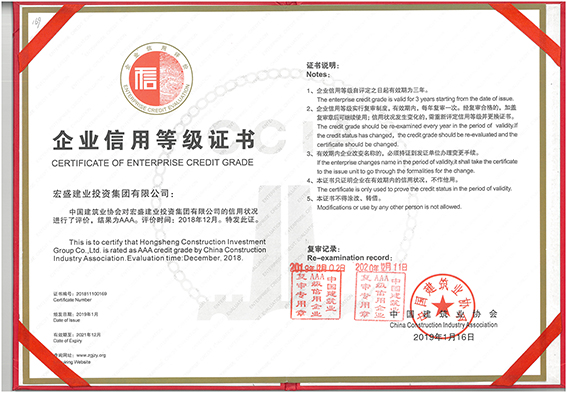 中國(guó)建筑業(yè)協(xié)會(huì)于2021年10月發(fā)布了《關(guān)于公布2021年度建筑業(yè)AAA級(jí)信用企業(yè)的通知》,共計(jì)評(píng)定出431家企業(yè)。宏盛建業(yè)在諸多企業(yè)中脫穎而出,獲得“全國(guó)建筑業(yè)AAA級(jí)信用企業(yè)”榮譽(yù)稱號(hào),連續(xù)4次榜上有名。