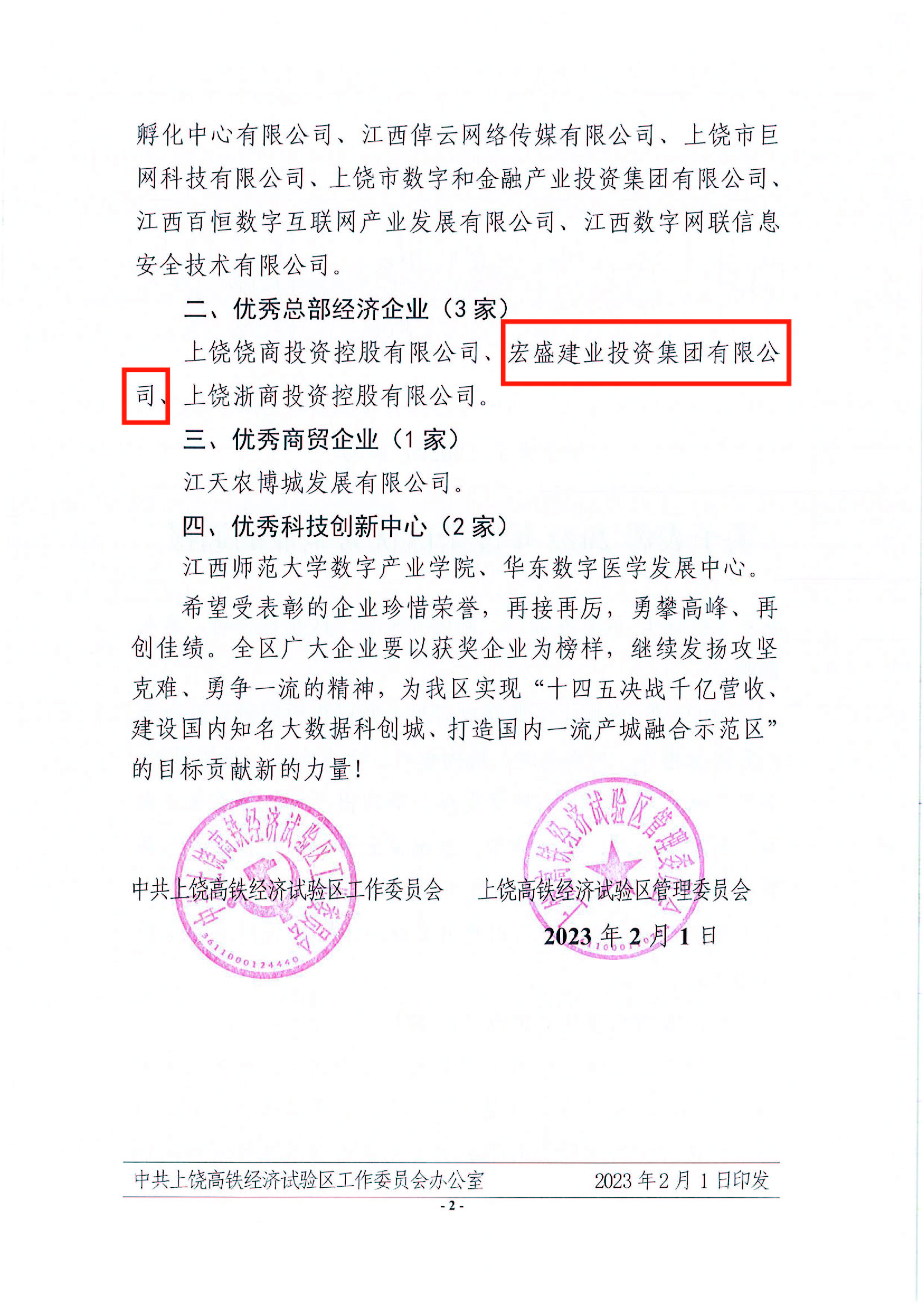 喜訊|宏盛建業(yè)獲評(píng)上饒高鐵經(jīng)濟(jì)試驗(yàn)區(qū)2022年度優(yōu)秀總部經(jīng)濟(jì)企業(yè)