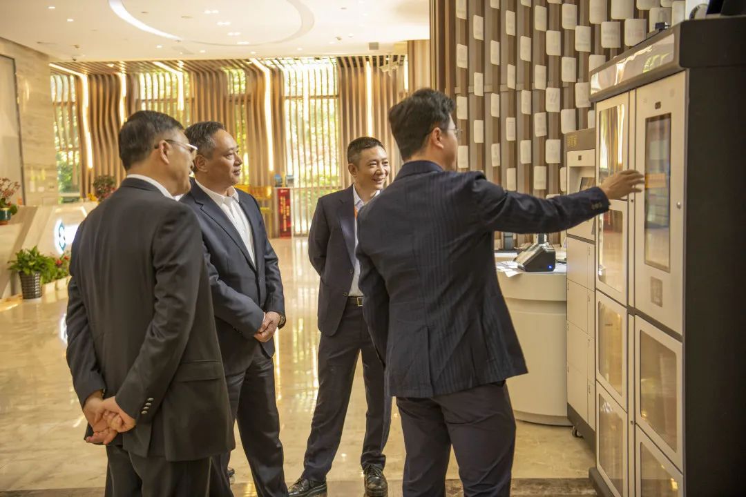 在智慧工地演示大屏前,一行領導詳細了解了企業(yè)在智慧工地、智能樓宇的對內實際應用和對外推廣情況,對通過物聯(lián)網(wǎng)、大數(shù)據(jù)等技術,實現(xiàn)對工地、樓宇的實時監(jiān)控、數(shù)據(jù)分析和智能管理給予了充分肯定。在章管家印章智慧管理體驗區(qū),研發(fā)人員介紹了從合同到用印再到歸檔的全鏈智慧管理,通過軟件平臺加智慧硬件,為全行業(yè)企業(yè)防范風險、提高效率。一行領導對集團在科技創(chuàng)新方面的持續(xù)發(fā)力給予了高度評價,希望此后繼續(xù)保持創(chuàng)新的動力,不忘初心,精益求精,做強主業(yè),做優(yōu)品質,不斷探索建筑產(chǎn)業(yè)轉型升級、數(shù)智化延伸、高質量發(fā)展之路,為各地經(jīng)濟發(fā)展、民生建設貢獻企業(yè)力量。