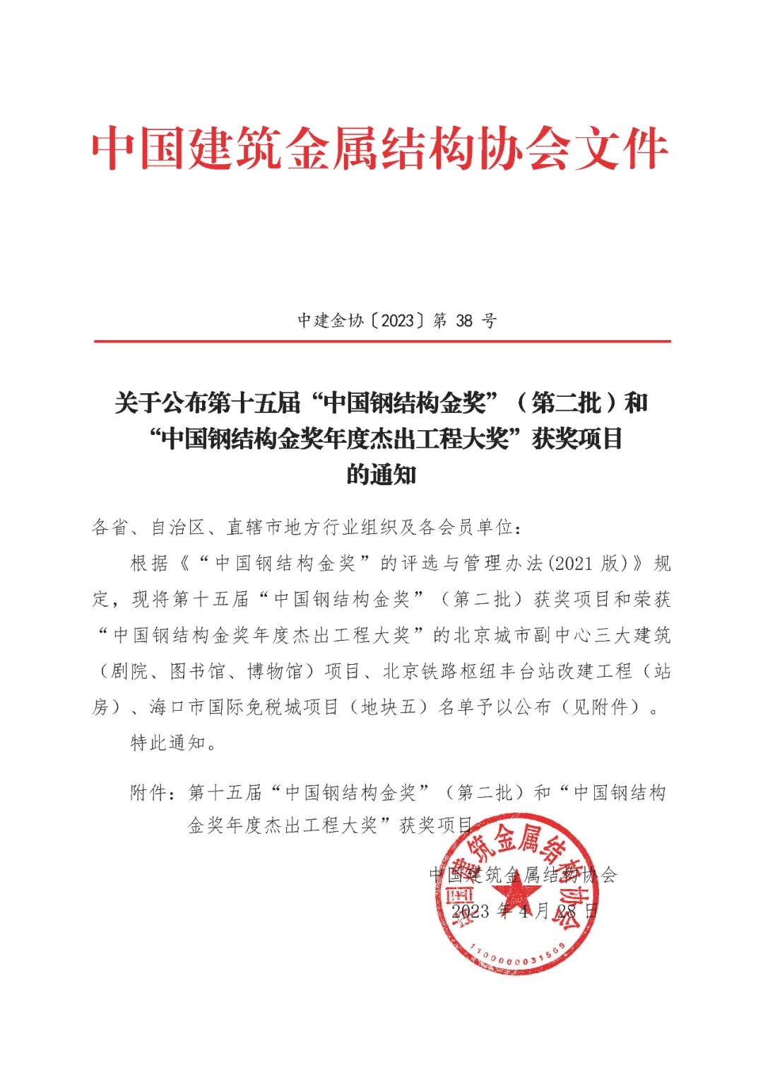 “中國鋼結(jié)構(gòu)金獎”作為全國鋼結(jié)構(gòu)工程領(lǐng)域的最高質(zhì)量獎項,是鋼結(jié)構(gòu)工程領(lǐng)域唯一的國家優(yōu)質(zhì)工程獎,代表了中國鋼結(jié)構(gòu)行業(yè)最高榮譽(yù)和工程質(zhì)量的領(lǐng)先水平。