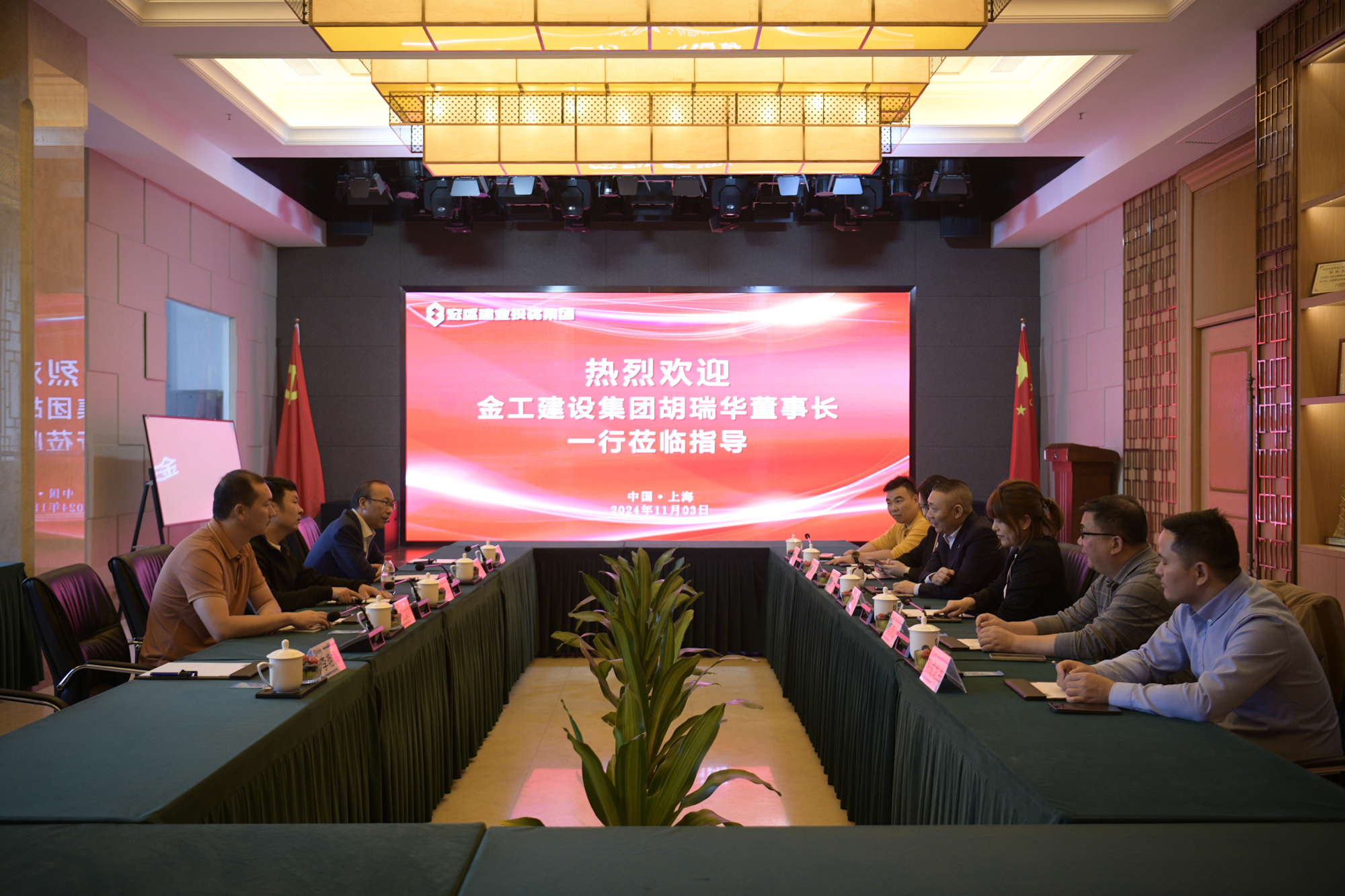 導(dǎo)讀:11月3日下午,金工建設(shè)集團(tuán)股份有限公司董事長(zhǎng)胡瑞華率團(tuán)到訪宏盛建業(yè)投資集團(tuán)上海總部,大家就當(dāng)前市場(chǎng)環(huán)境下的工程業(yè)務(wù)發(fā)展進(jìn)行了深入探討與交流,雙方圍繞如何實(shí)現(xiàn)協(xié)同互動(dòng)、優(yōu)勢(shì)互補(bǔ)與互利共贏展開(kāi)了全方位探討,并初步達(dá)成共識(shí)。集團(tuán)董事長(zhǎng)周金虎,黨委書(shū)記、監(jiān)事長(zhǎng)成承陪同并做交流。