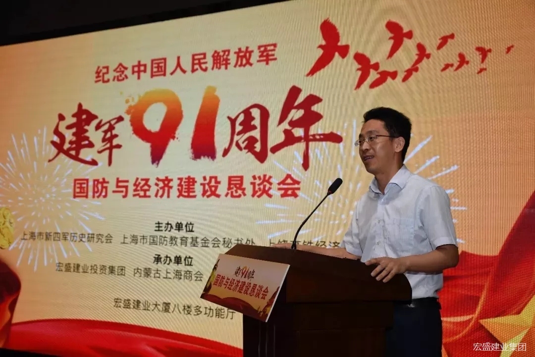 7月25日下午,由上海市國防教育辦公室指導(dǎo),上海市新四軍歷史研究會(huì)、上海市國防教育基金會(huì)秘書處、上饒市高鐵經(jīng)濟(jì)試驗(yàn)區(qū)等單位主辦,宏盛建業(yè)投資集團(tuán)等承辦的“慶祝中國人民解放軍建軍91周年---國防與經(jīng)濟(jì)建設(shè)懇談會(huì)”在集團(tuán)上海總部八樓舉行,來自四十二家商協(xié)會(huì)秘書長參加、國防教育先進(jìn)單位代表100多人出席活動(dòng)。