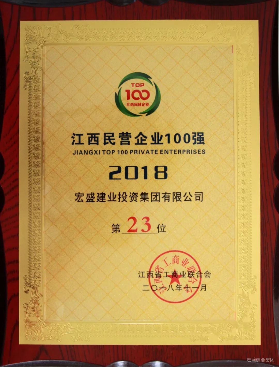 宏盛建業(yè)集團(tuán)再獲得江西民營(yíng)企業(yè)百?gòu)?qiáng)殊榮