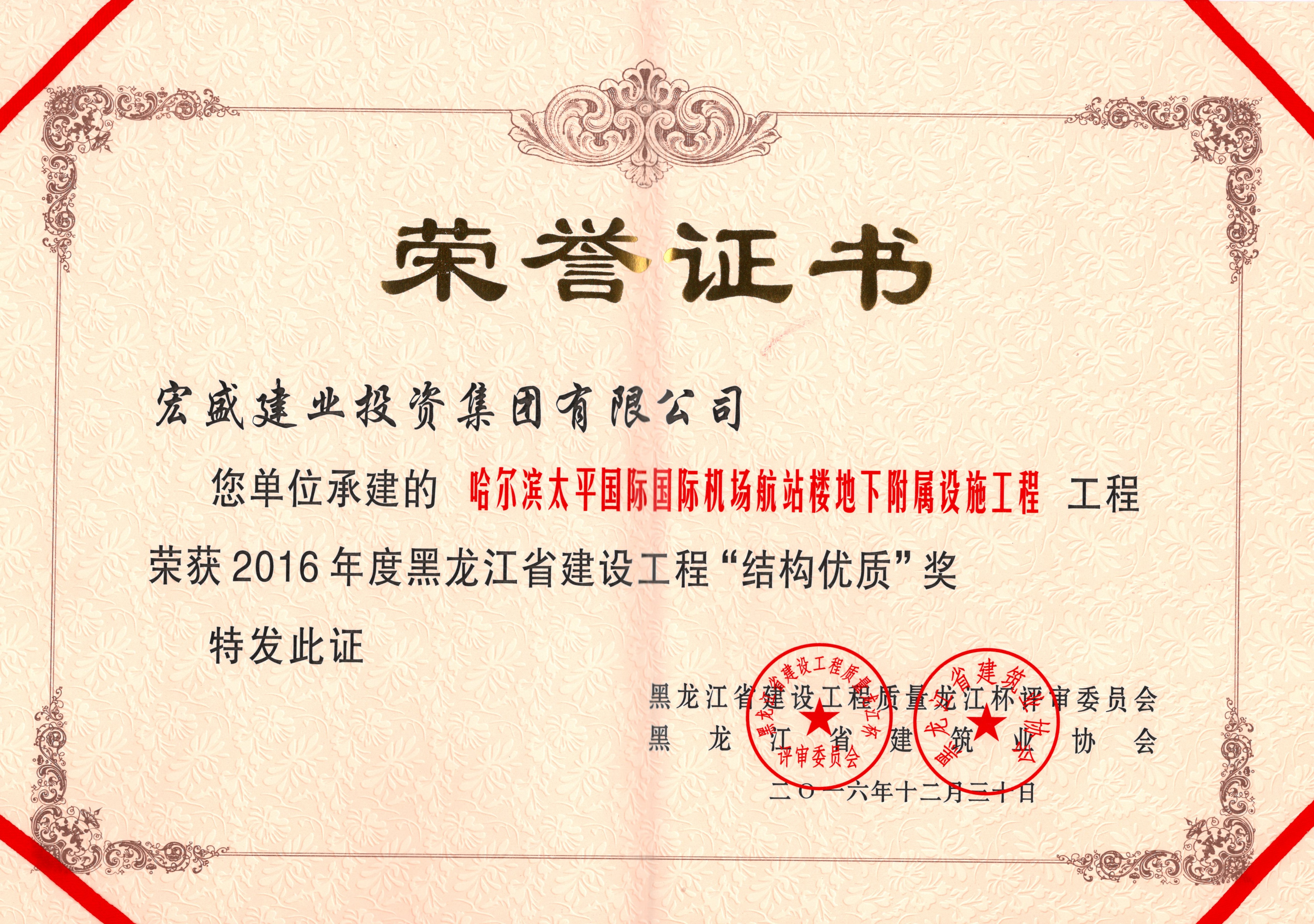 2016年度黑龍江省 建設(shè)工程質(zhì)量?jī)?yōu)質(zhì)結(jié)構(gòu)