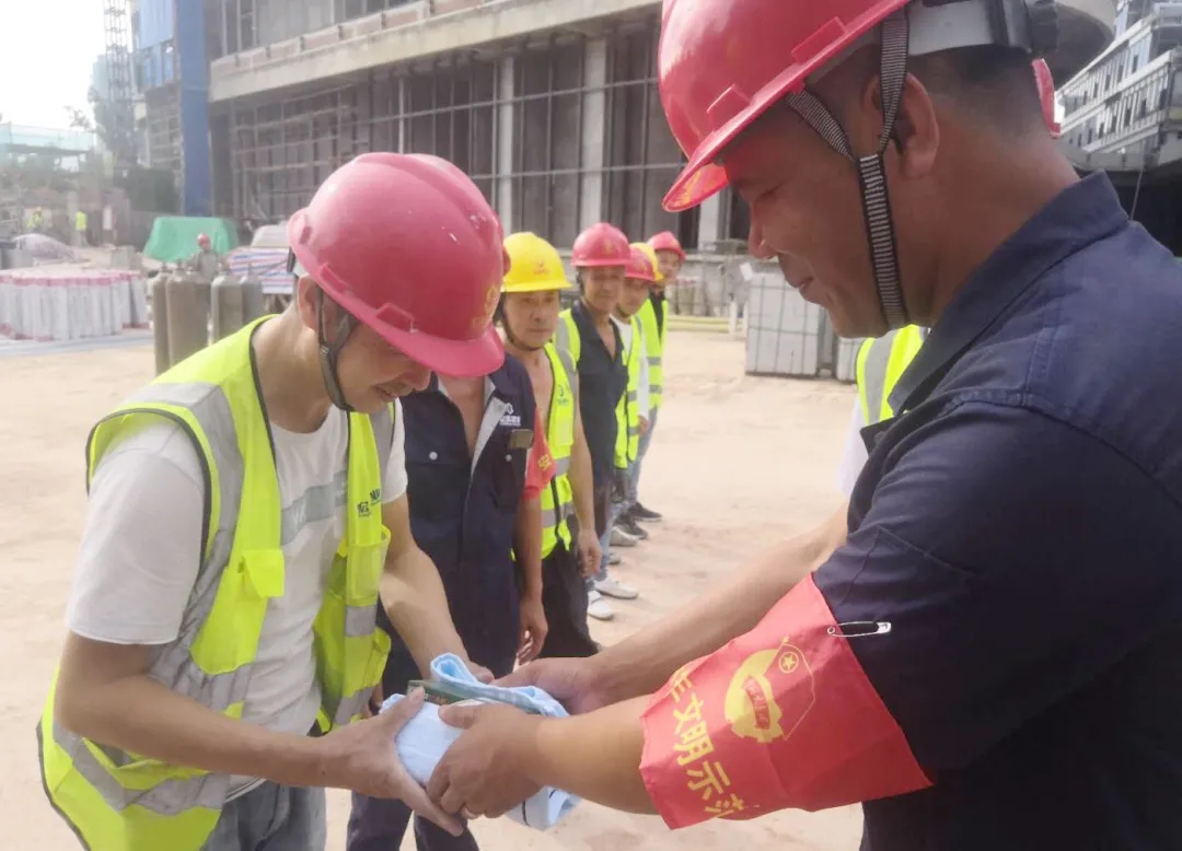 金慧一行一邊發(fā)放慰問(wèn)品,一邊詢(xún)問(wèn)施工人員工作生活中遇到的困難,提醒大家暑期施工要注意防暑和施工安全,鼓勵(lì)大家要精心組織,科學(xué)管理,攻堅(jiān)克難,奮力拼搏,堅(jiān)持安全與質(zhì)量并抓,持續(xù)推進(jìn)項(xiàng)目建設(shè)進(jìn)度。