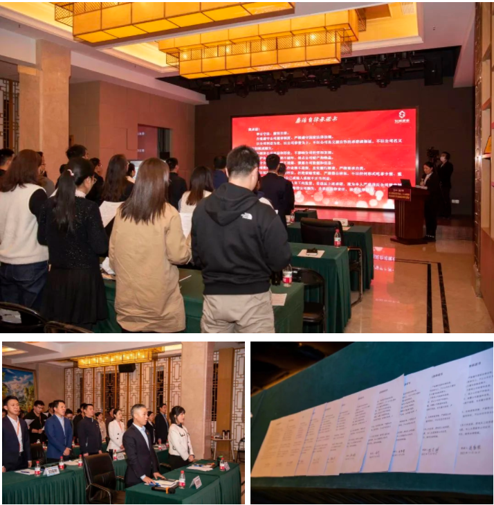 最后全體參會人員莊嚴(yán)宣誓,錚錚誓言鏗鏘有力,莊嚴(yán)承諾擲地有聲,將會議推向了高潮。宣誓結(jié)束后,全體人員鄭重簽字承諾。