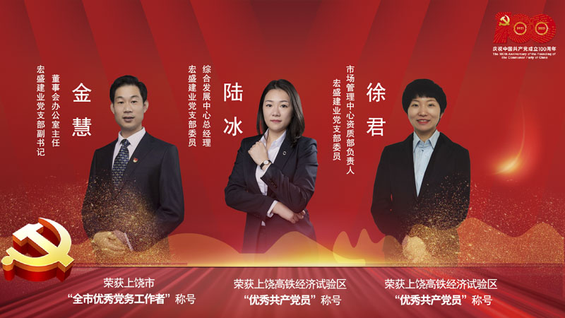 宏盛建業(yè)黨支部副書記、董事會辦公室主任金慧榮獲“上饒市優(yōu)秀黨務(wù)工作者”稱號,宏盛建業(yè)黨支部委員、綜合發(fā)展中心總經(jīng)理陸冰和宏盛建業(yè)黨支部委員、市場管理中心資質(zhì)部負(fù)責(zé)人徐君榮獲高鐵經(jīng)濟(jì)試驗區(qū)“優(yōu)秀共產(chǎn)黨員”稱號。