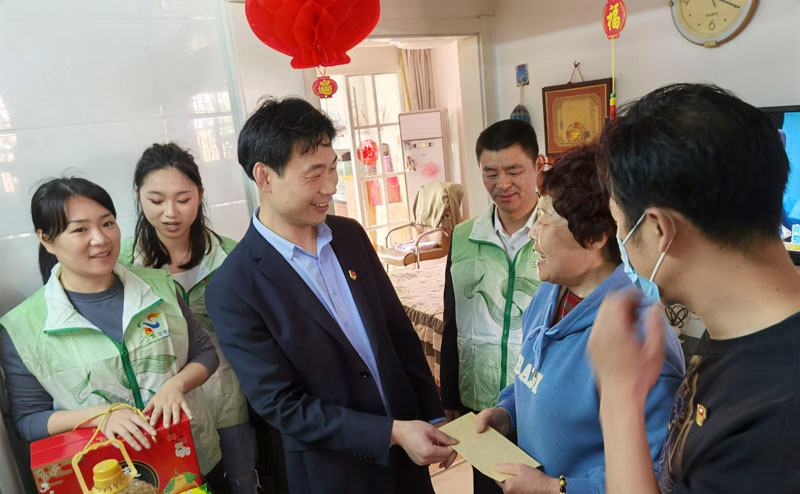 集團(tuán)監(jiān)事、綜合發(fā)展中心總經(jīng)理陸冰、黨支部副書記金慧一行在社區(qū)工作人員的陪同下走訪、探望社區(qū)困難家庭,并為他們送上了米、油、水果、牛奶等生活用品和慰問金。