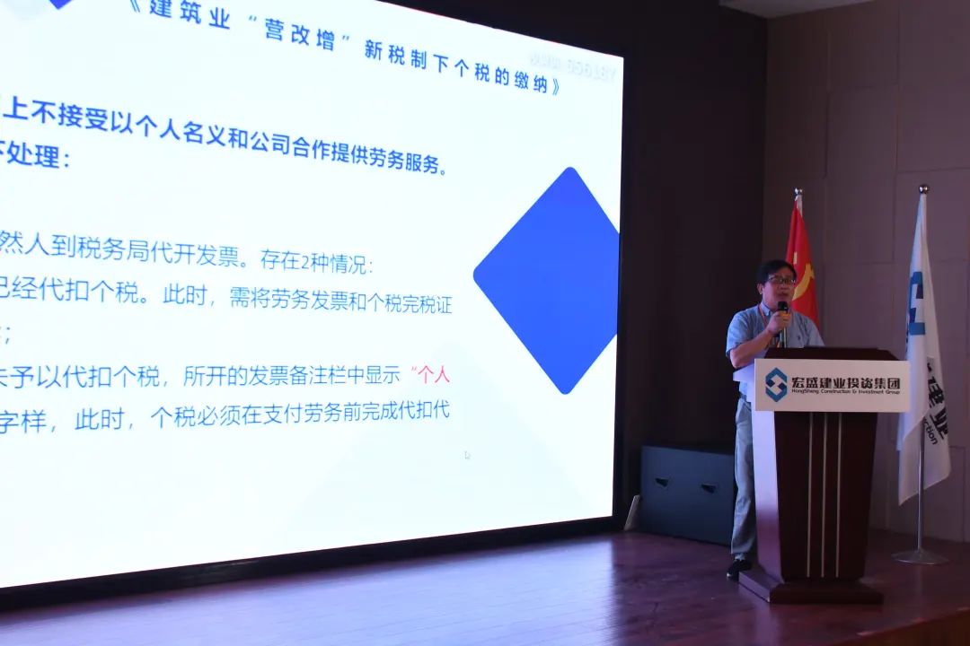 2022年8月8日,宏盛學(xué)堂財稅專項培訓(xùn)第一期《建筑業(yè)“營改增”新稅制下個稅的繳納》于總部大樓八樓召開。