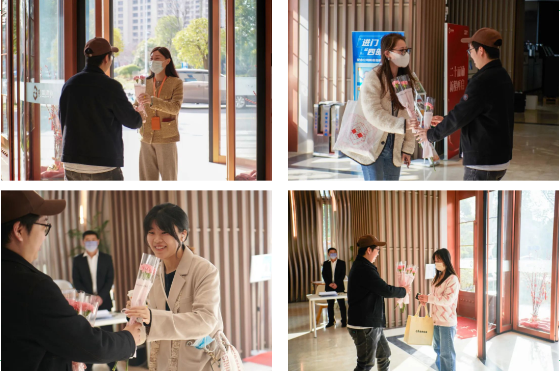 當天,宏盛建業(yè)一樓大廳被布置一新,“宏盛藍”與“巾幗紅”碰撞出鮮明的活力,過節(jié)的喜悅洋溢在女工友們的臉上,她們們手捧鮮花,笑容甜入心坎。員工們紛紛表示,平時工作很忙,也不會給自己過什么節(jié)日,逢年過節(jié)都會收到公司的慰問和禮物,這她們的生活充滿了小驚喜,工作幸福感也大大提升!