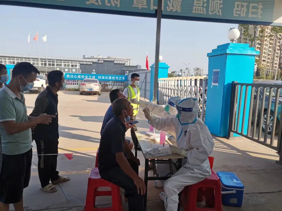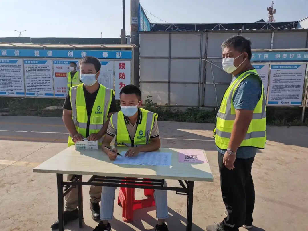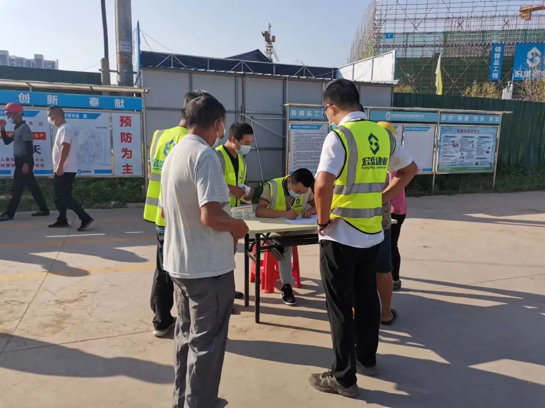 項目現(xiàn)場設(shè)置多個核酸檢測點,提醒需要采集的工人佩戴口罩、保持距離,點位落實消殺,妥善處理醫(yī)廢。