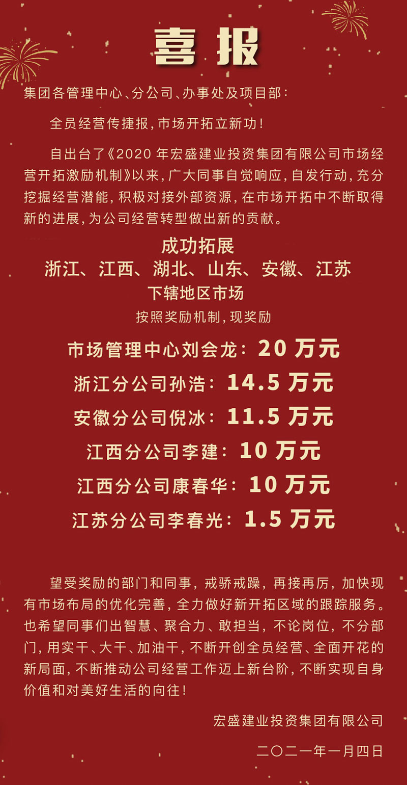 會上,集團(tuán)對市場經(jīng)營階段性成果進(jìn)行表彰,現(xiàn)場為2020年度成功開拓簽約地區(qū)級市場合作的先進(jìn)集體和個人,以及成功中標(biāo)規(guī)模以上項目的分公司頒發(fā)現(xiàn)金獎勵。