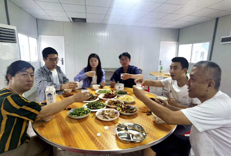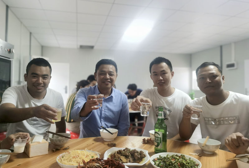 工作忙碌了整日,莫不疲勞、饑餓。下午6點整,忙碌了大半天的項目部餐廳一切準(zhǔn)備就緒,傳來了開飯的消息,于是乎大家紛紛離開辦公區(qū)域匯聚至餐廳入席就餐。一桌豐盛的家常菜配以薄酒,組成了項目部生日會活動溫暖的開端。
