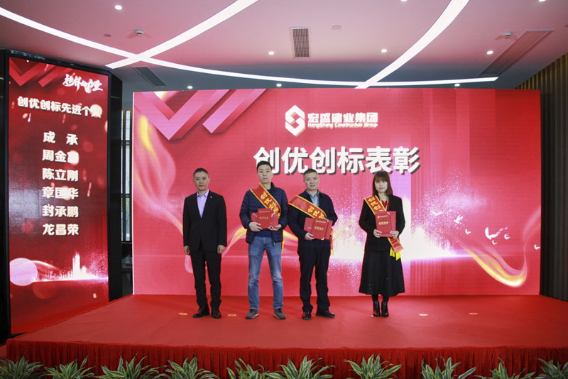 集團(tuán)副董事長、總裁周金旺頒發(fā)項(xiàng)目創(chuàng)優(yōu)創(chuàng)標(biāo)先進(jìn)個人獎。6位受表彰人員分別是:成承、周金富、陳立剛、章國華、封承鵬、龍昌榮。