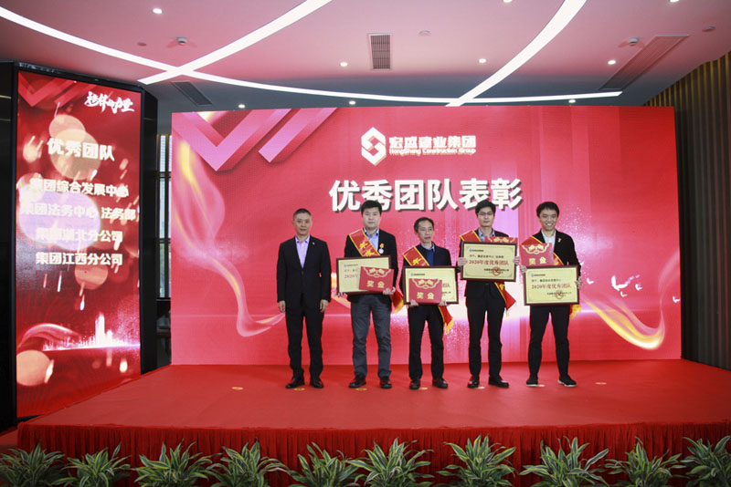 集團(tuán)副董事長、總裁周金旺頒發(fā)2020年度優(yōu)秀團(tuán)隊獎。8個受表彰團(tuán)隊分別是:集團(tuán)綜合發(fā)展中心、集團(tuán)法務(wù)中心 法務(wù)部、集團(tuán)湖北分公司、集團(tuán)江西分公司、上饒市建筑科技產(chǎn)業(yè)園工程項(xiàng)目總承包部、四川宜賓宏睿房地產(chǎn)開發(fā)有限公司 開發(fā)營銷部、上海建業(yè)信息科技股份有限公司 研發(fā)中心、上饒市建筑科技產(chǎn)業(yè)園投資管理有限公司 工程中心。
