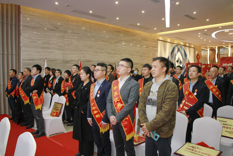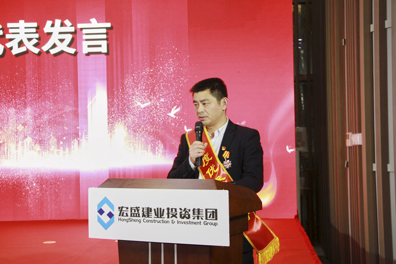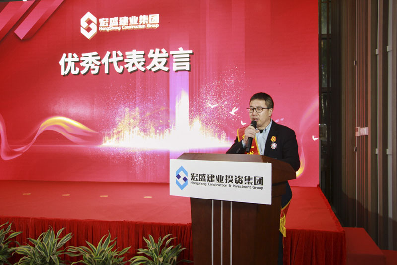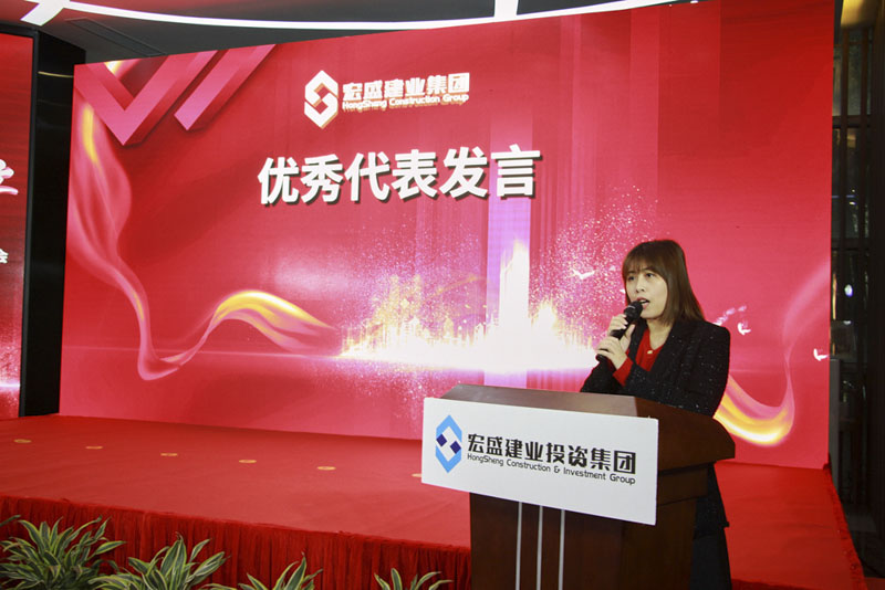 周金虎董事長致辭講話。他向全體受表彰人員表示祝賀,向所有忠于職守、勇挑重?fù)?dān)、砥礪前行的宏盛家人們表示感謝。他指出,今年是中國共產(chǎn)黨成立100周年,是“十四五”開局之年,也是宏盛發(fā)展進(jìn)程中具有重要意義的一年,集團(tuán)已描繪好未來藍(lán)圖。他希望大家發(fā)揚(yáng)“三?!本瘢煌跣?,緊跟國家發(fā)展大勢,加快轉(zhuǎn)型升級步伐,加緊市場拓展進(jìn)程,加速搶抓發(fā)展機(jī)遇,不斷提升集團(tuán)高質(zhì)量發(fā)展水平。